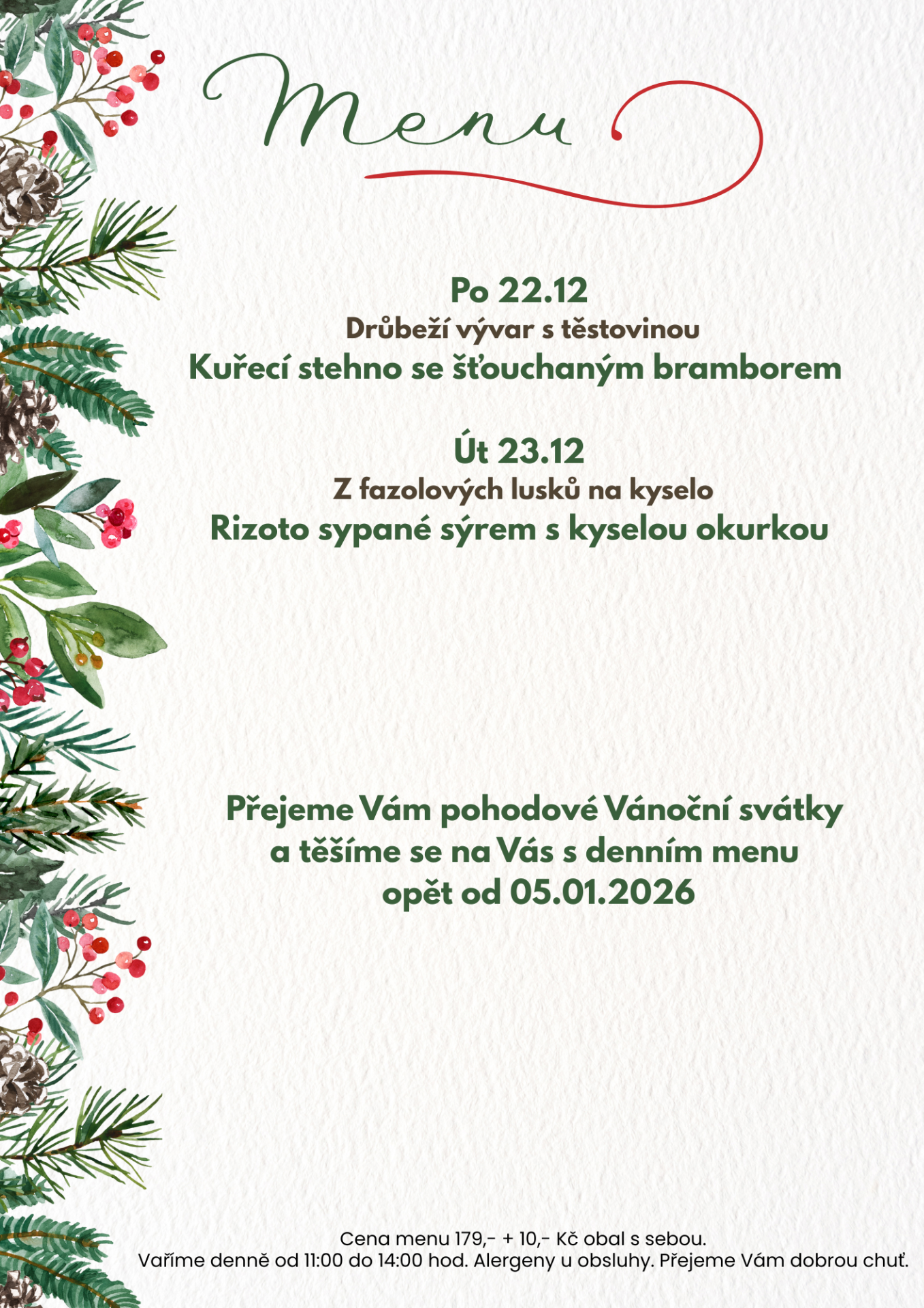 ✔ Vaříme denní menu Po-Pá 11 - 14 hod.