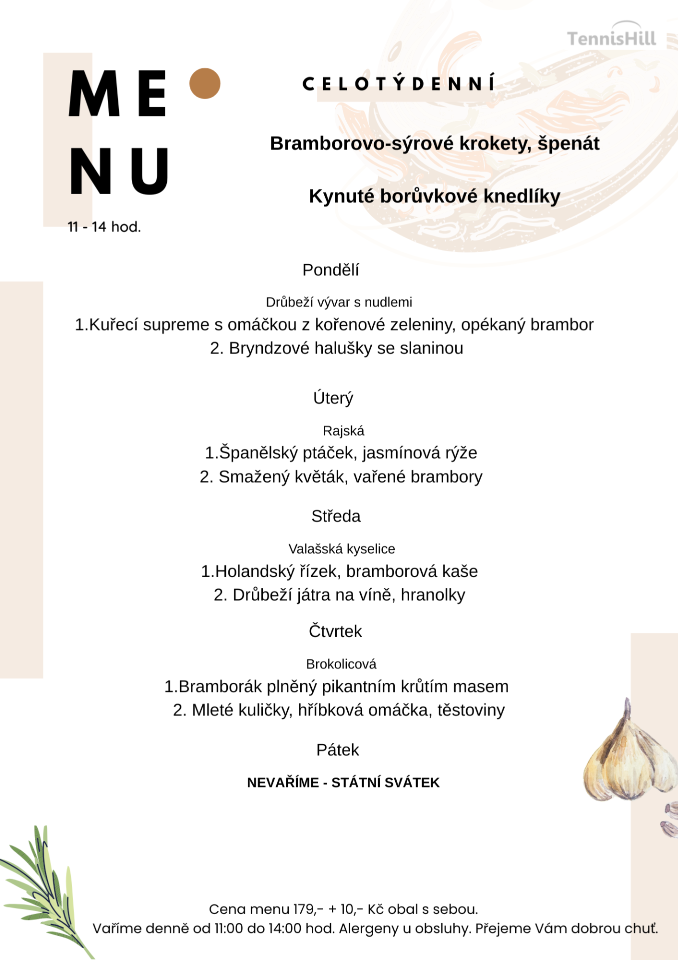 ✔ Vaříme denní menu Po-Pá 11 - 14 hod.